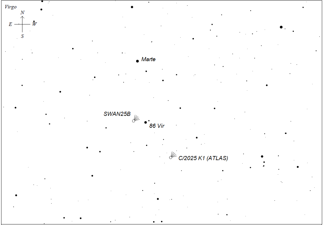 Nos dias 19 e 20 ele se situou cerca de 1° do Cometa C/2025 K1 (ATLAS).