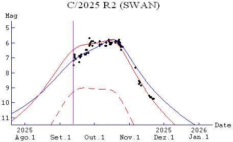 m1 = 12,4 + 5 log D + 10 log r (MPC, tracejado)