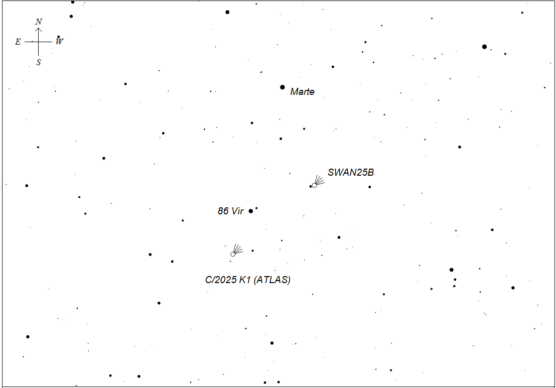 Nos dias 19 e 20 ele se situou cerca de 1° do Cometa C/2025 K1 (ATLAS).
